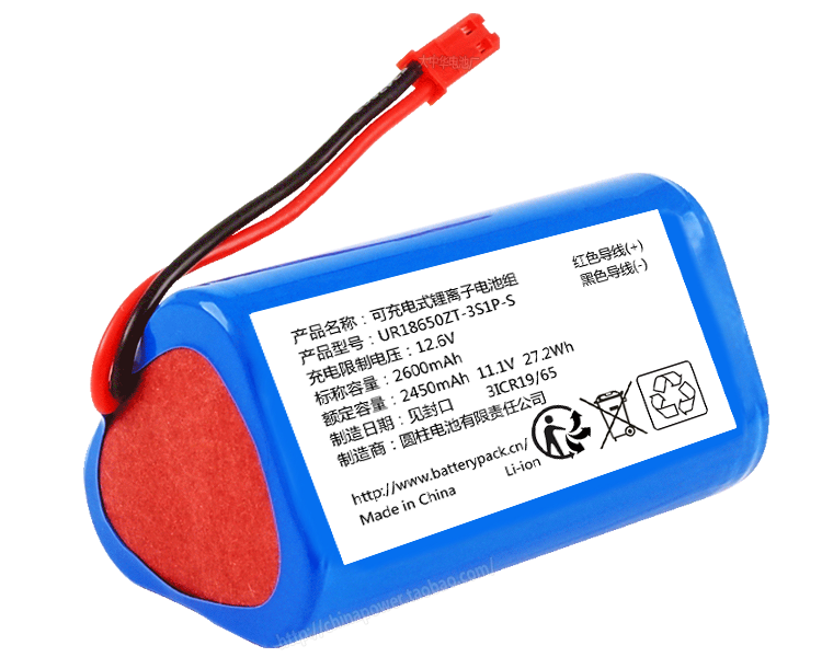 UR18650ZT-3S1P-S 2450mAh 11.1v 27.2Wh 可充电式锂离子电池组