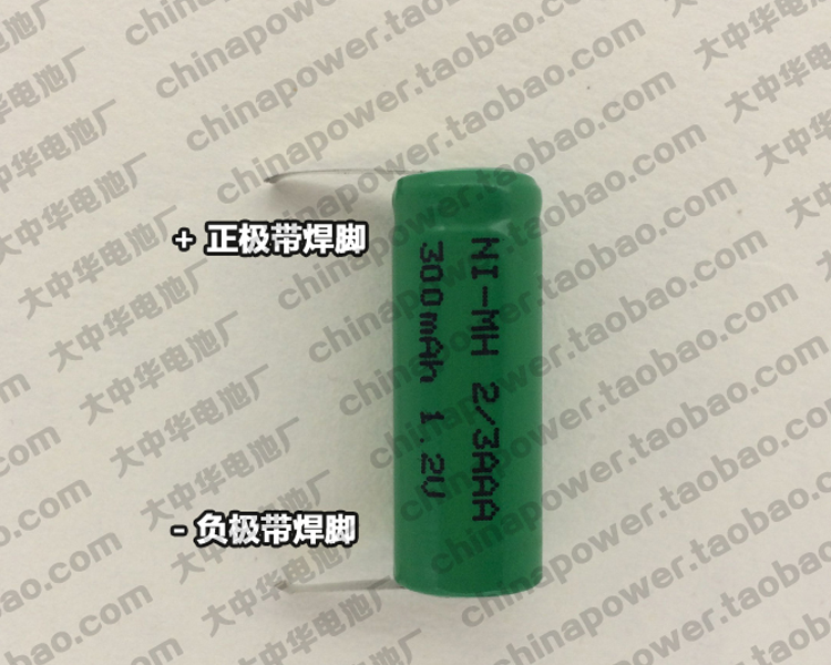 带焊脚平头1/3AA1.2v伏300mAh毫安短五号NI-MH5号镍氢可充电电池