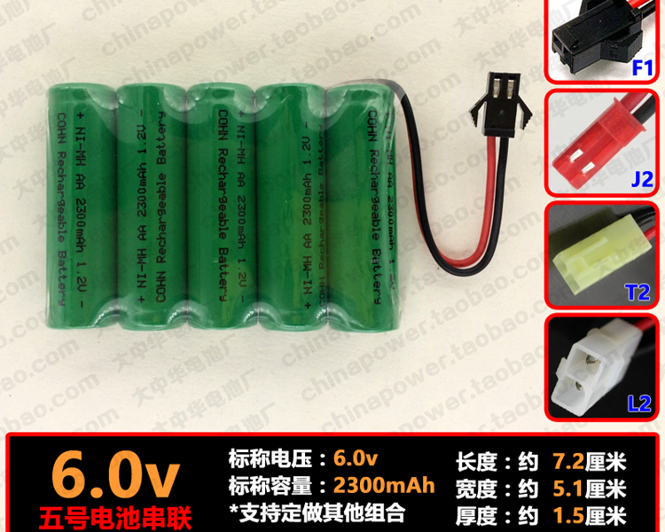 带插头可充电6.0v伏AA2300五号电池组NI-MH镍氢5节串联仪器设备用