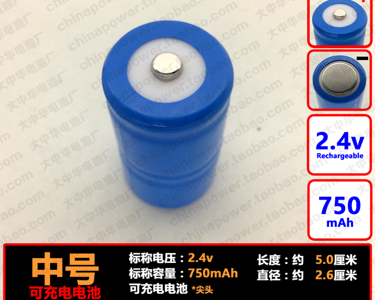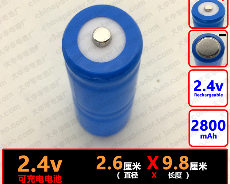 尖头 可充电 C2800 2.4v 2.8AH 强光手电筒 中号2节串联电池组