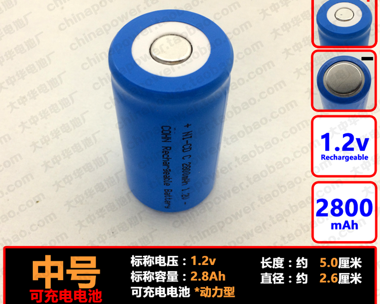 可充电平头2号动力电池 C 1.2v 2.8AH工业设备仪表吸尘器替换电芯