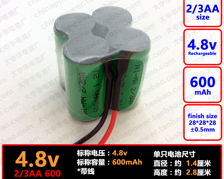 带线 可充电电池组 4.8V 2/3AA 600mAh 仪表设备替换电芯