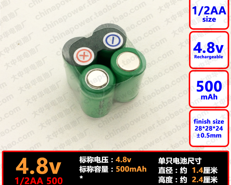 COHN可充电电池组 4.8V 1/2AA 500mAh 移液器专用