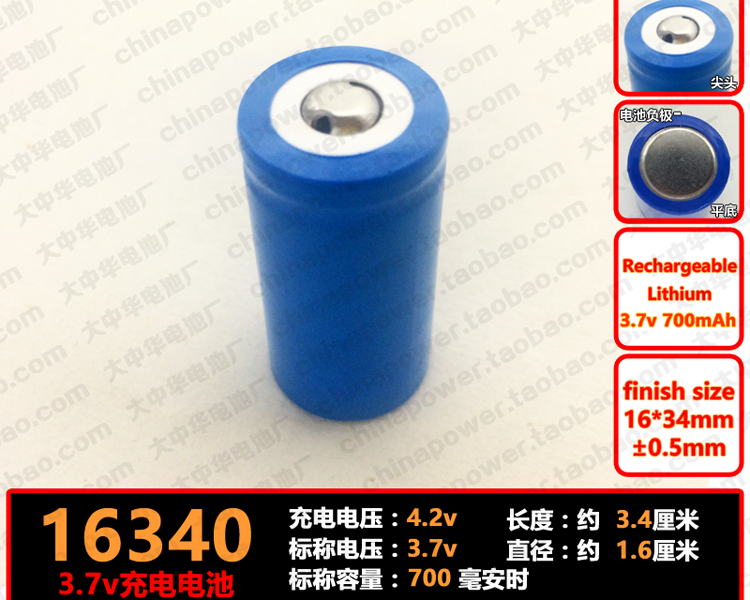 COHN 16340 3.7v 可充电锂电池 直径1.6厘米长度3.4厘米