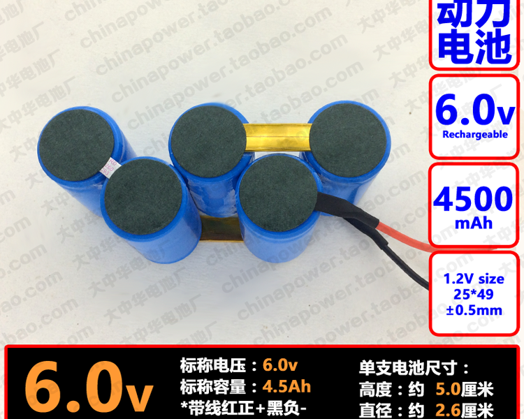 带线 可充电动力电池组 C型 6.0V 4.5AH 四轮定位仪替换电池