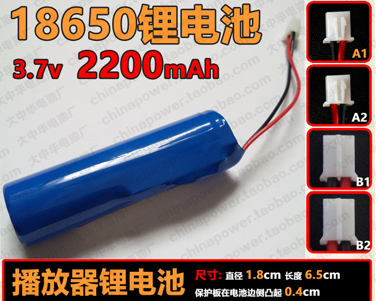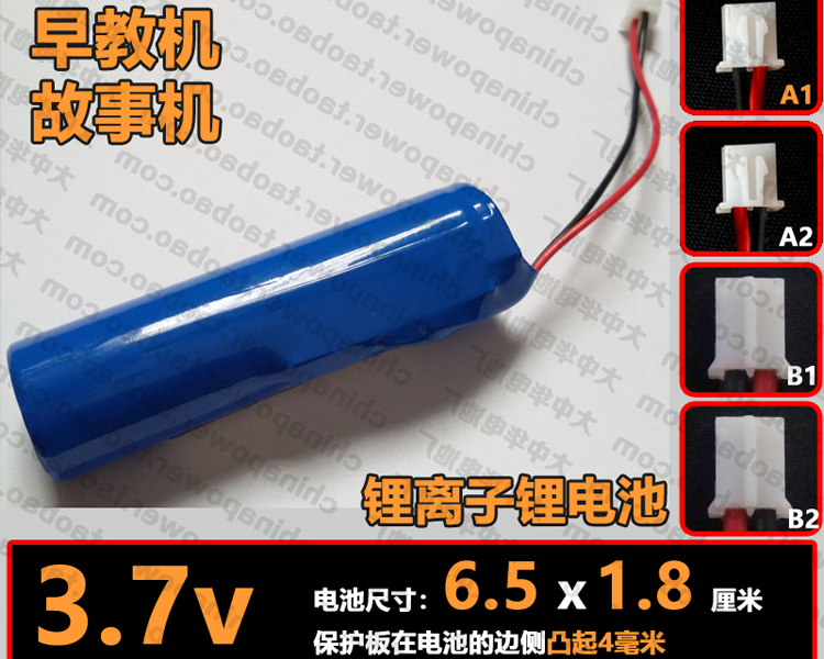 带插头 3.7v 2200mAh COHN18650锂电池 5v早教机故事机适用