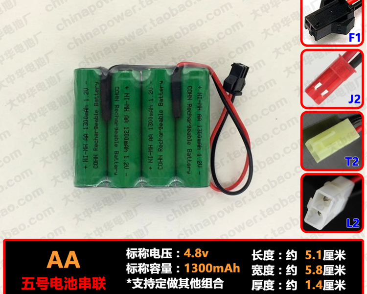 带F1插头 NI-MH AA 1300mAh 4.8v 可充电COHN5号镍氢电池组