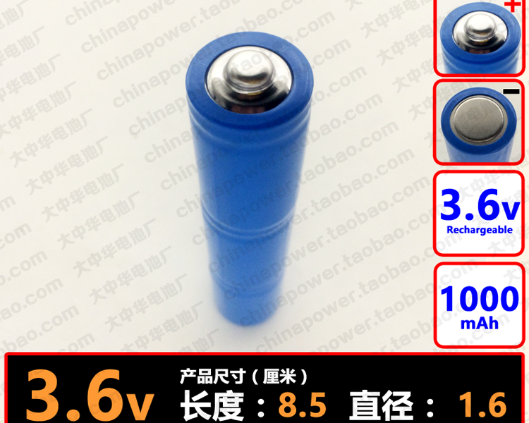 1/2A 1000mAh 3.6v COHN可充电电池组 史丹利强光手电筒适用