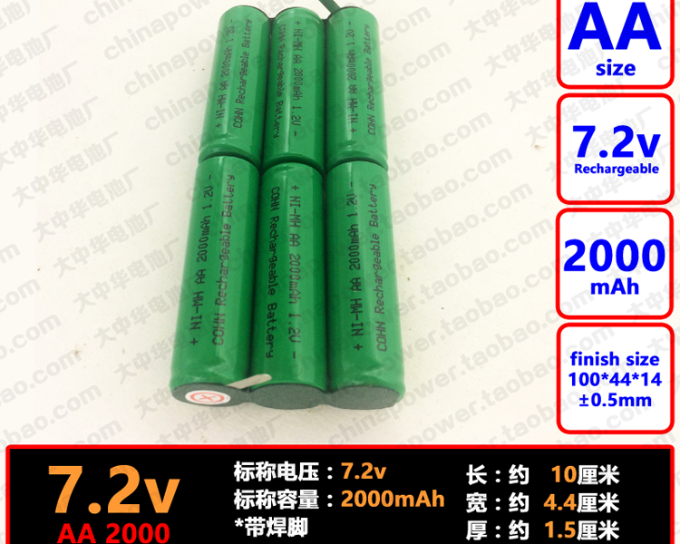 带焊脚川型可充电AA7.2V2000mAh镍氢NIMH电池组仪表设备替换电芯