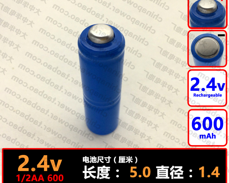 Ni-MH 1/2AA 600mAh 2.4V 胎心仪专用 可充电COHN5号电池1支装