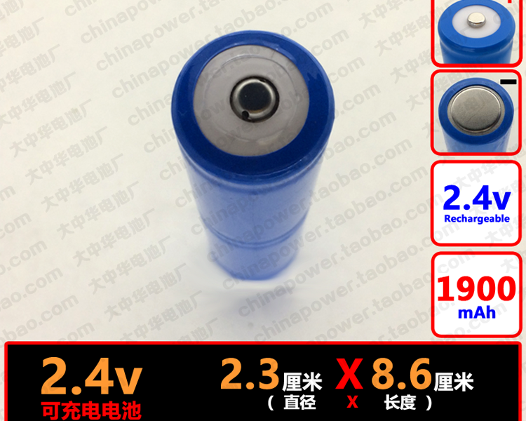 尖头Ni-Cad Battery 2.4V 1900mAh强光手电筒可充电电池组23*86mm