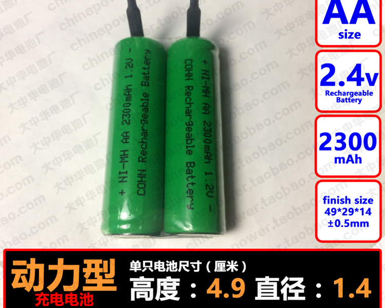 带焊片AA 2.4v 2300mAh可充电COHN5号电池组 部分飞利浦剃须刀用