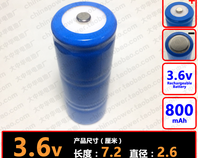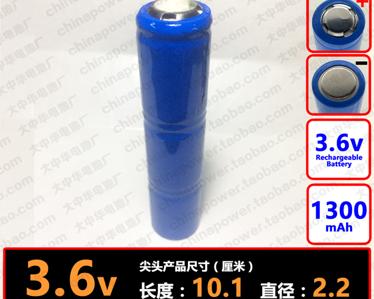 3.6V1300mAh直径2.2厘米长度9.9厘米 强光手电筒可充电动力电池组