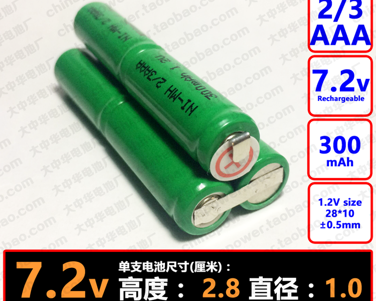 可充电7.2v 2/3AAA 品字COHN短7号镍氢电池组 防狼强光手电筒专用