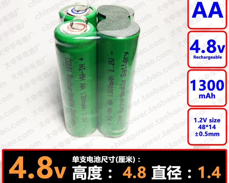 可充电AA4.8v1300mAh田字COHN5号镍氢电池组 防狼强光手电筒专用