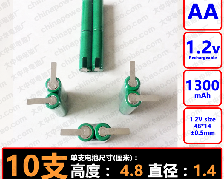 10支套装AA1.2V1300mAh5号COHN镍氢NIMH电池伊莱克斯吸尘器适用