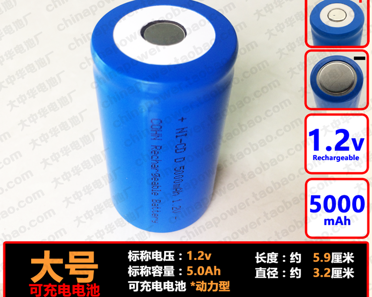 平头可充电1号大号D型1.2V伏5000mAh动力电池仪器设备替换电芯