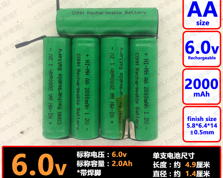 带焊脚可充电五号电池组AA6.0V2.0AH仪器仪表设备电瓶替换电芯