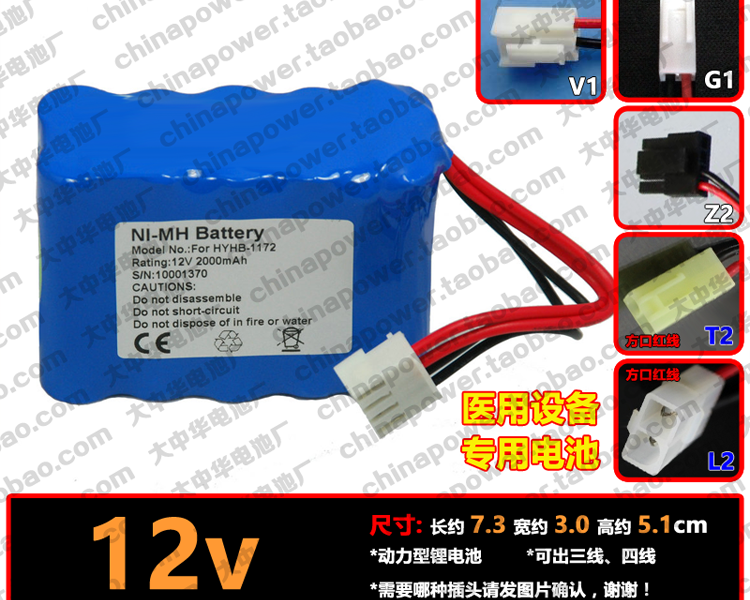 可充电12V 监护仪 注射泵 COHN NIMH battery 电池组