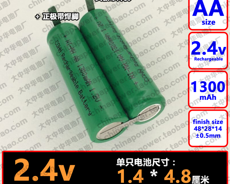 带焊脚可充电COHN NiMH 2.4v AA 1300mAh 吸尘器替换电芯