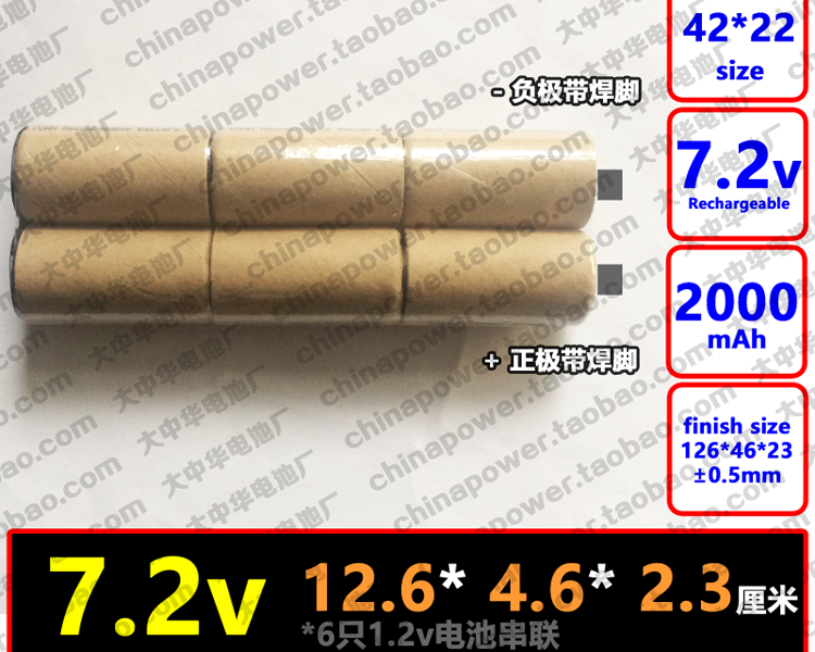 带焊脚H型 COHN可充电动力电池组 7.2V SC 2000mAh