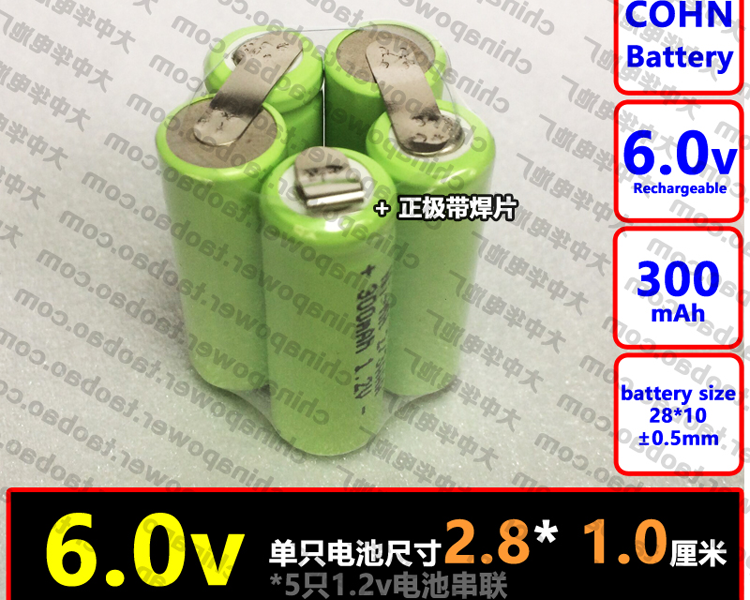 五环 6.0v 300mAh 可充电电池组 5支10x28mm串联