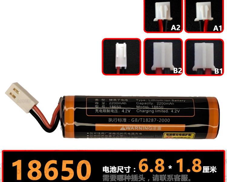 充电限制电压 4.2v 18650 2200mAh 带插头锂离子电池