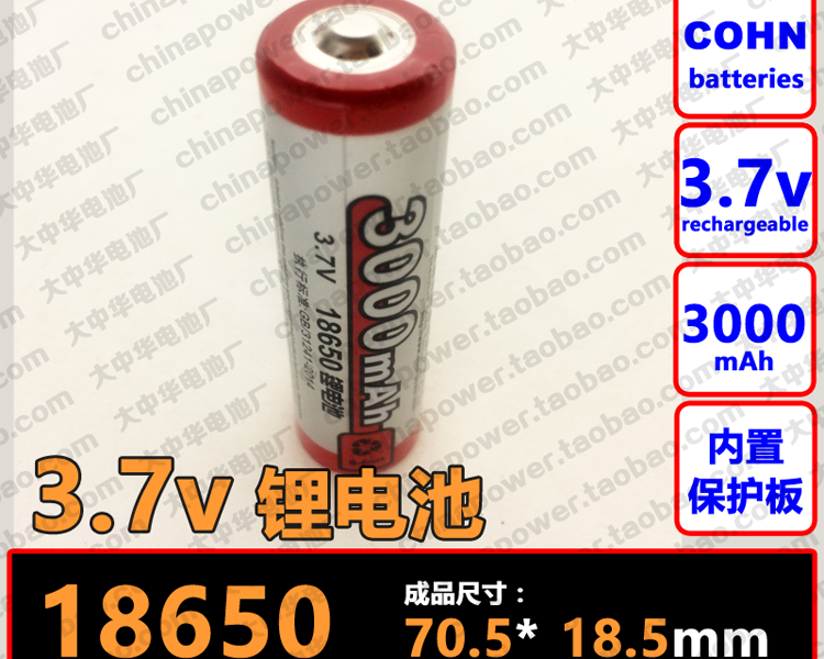可充电 COHN 18650 3.7v 3000mAh MV5920 MP5播放器专用锂电池