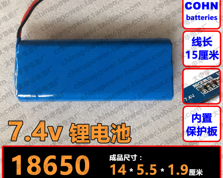 COHN 7.4v 18650低自放蓄能锂电池组 7.2v8.4v9伏精密设备替换用