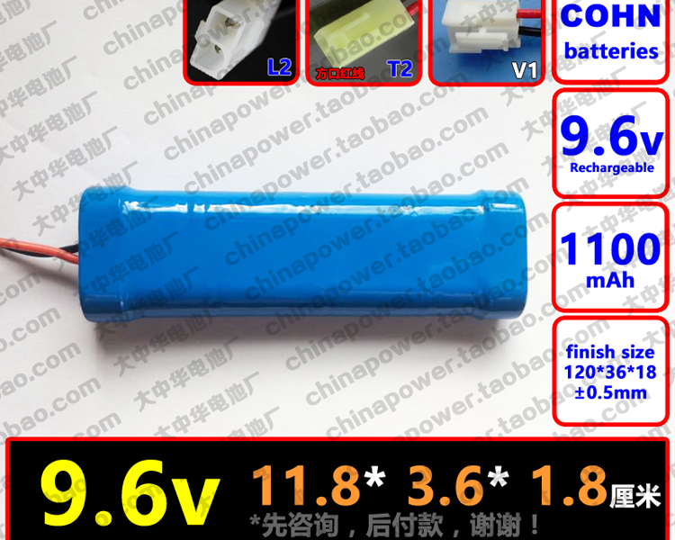 原装插头 COHN可充电 9.6v 2/3A NiMH电池组