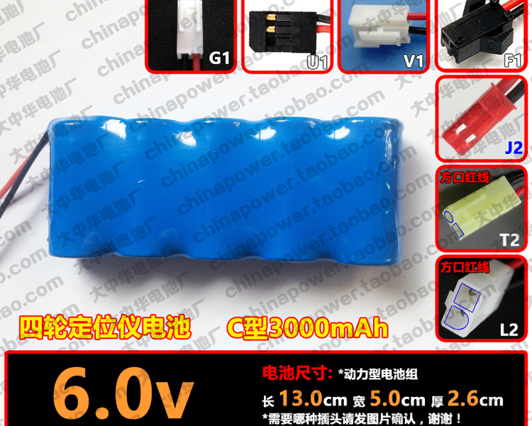 带线 COHN可充电电池组 NIMH C 4500mAh 6.0V 汽车四轮定位仪专用