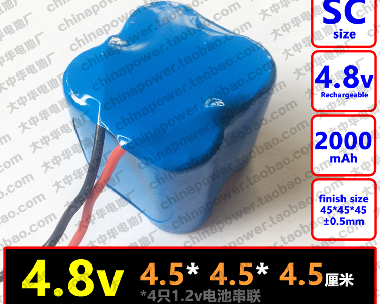 带线 COHN可充电动力型电池组 4.8v 2.0Ah 扫地机吸尘器 适用