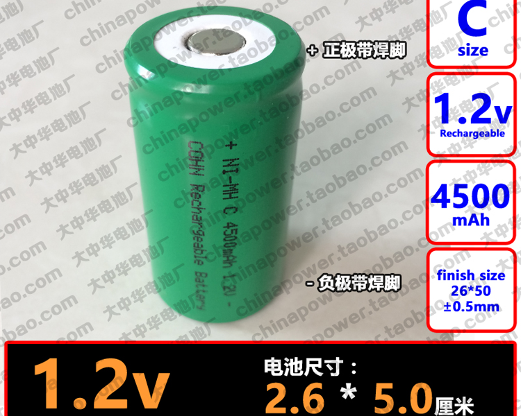 可充电COHN2号平头电池 1.2v 4500mAh size C Ni-MH 直径26高度49