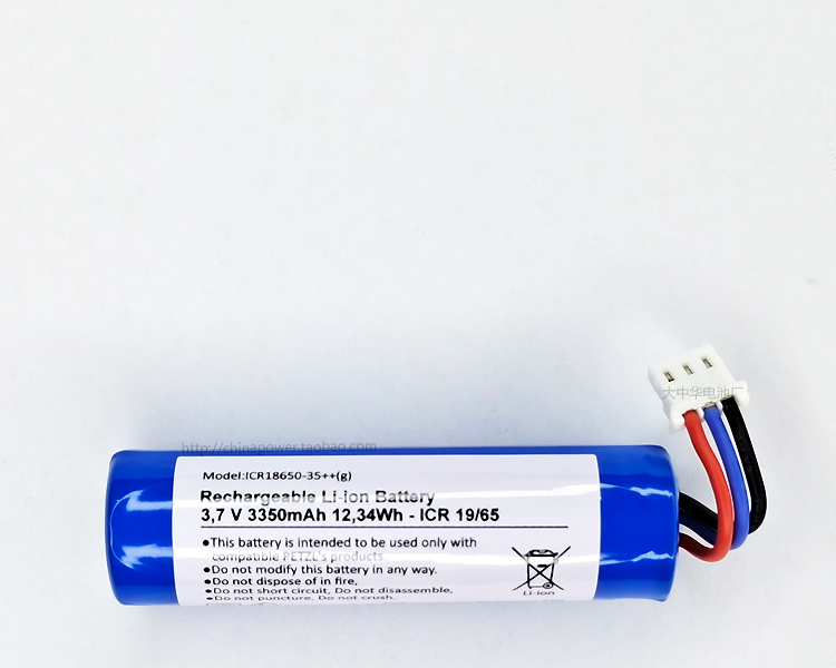 三线插头3.7v 18650 COHN可充电锂电池 适用Petzl E36NAO骑行头灯