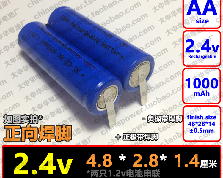 带焊脚 NI-CD AA 2.4v 1000mAh COHN5号 平头可充电电池组