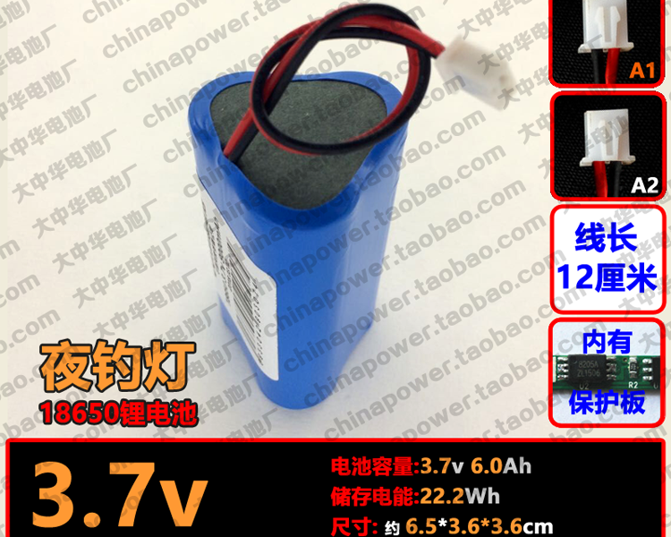 持久续航 全新A品 钓鱼灯夜钓灯头灯矿灯 3.7v COHN18650锂电池组