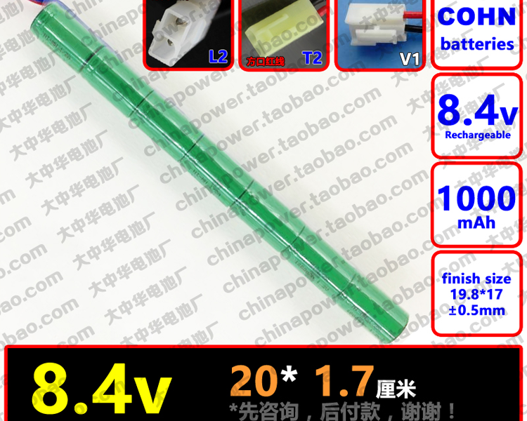 可充电COHN NI-MH 8.4v 1/2A 1000mAh 替换2/3A1100 动力型电池组