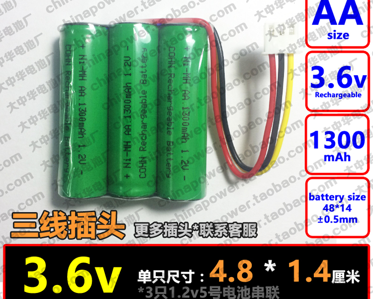 原装三线插头 3.6v AA 1300mAh COHN 5号 NIMH 镍氢电池组