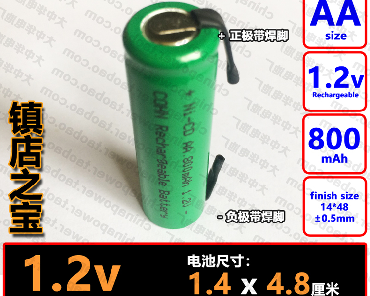 1件1支 带焊片 可充电 Ni-CD AA 1.2v 800mAh COHN平头5号电池