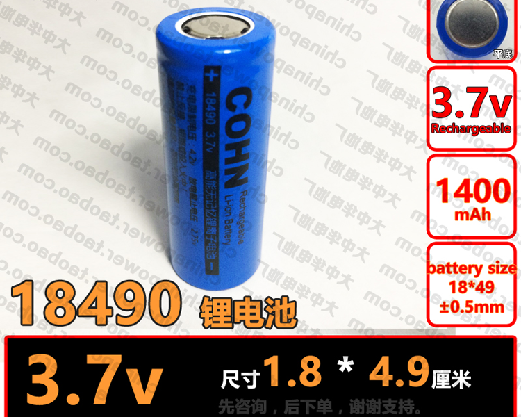 可充电光固化机锂电池 COHN 18490 3.7v 1400mAh 尺寸18x49mm