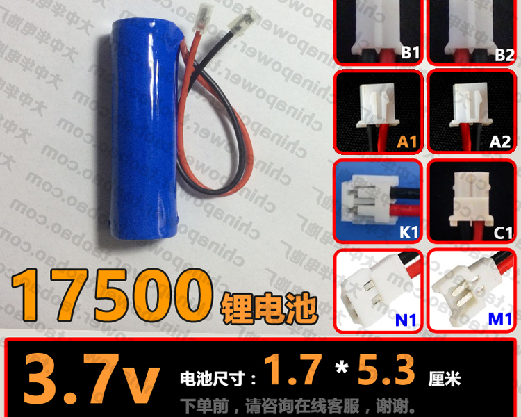 可充电LED光固化机锂电池 COHN 17500 3.7v 1100mAh 尺寸17x53mm
