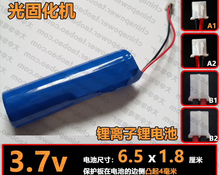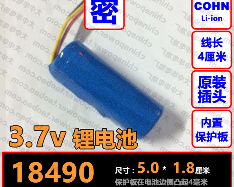 三线插头18490 3.7v 1600mAh COHN可充电锂电池 洁面仪适用