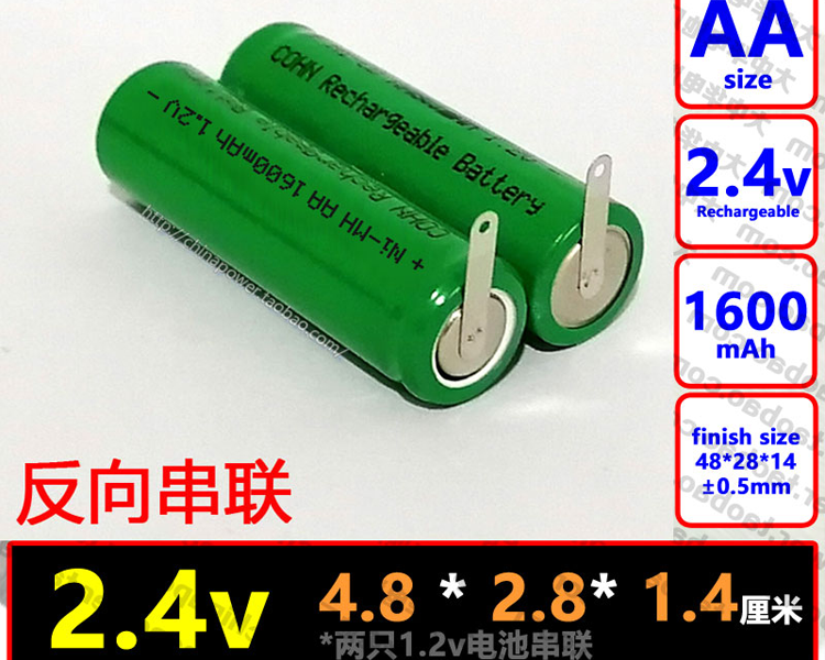 带焊脚 NI-MH AA 2.4v 1600mAh COHN5号平头镍氢可充电电池组
