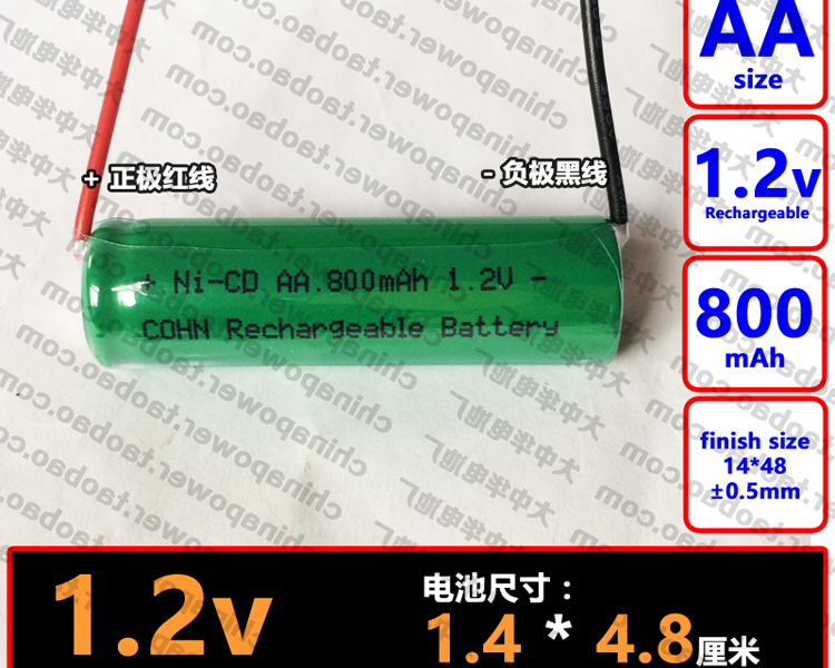 NI-CD AA 1000 1.2V 带线 COHN可充电 应急灯专用电池