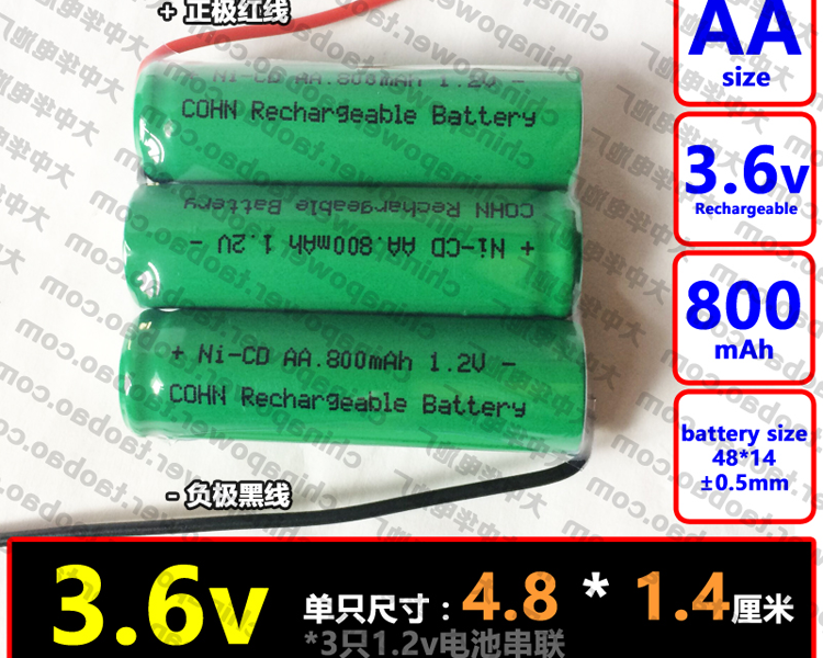 NI-CD AA 800 3.6V 带线 COHN可充电 应急灯专用电池组