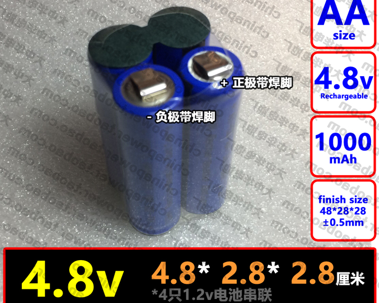 带焊片 Ni-CD AA 4.8V 1000mAh COHN可充电5号电池组 手电钻适用
