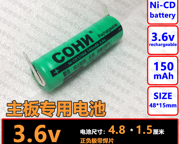可充电COHN Ni-Cd 1/3AA 150mAh 3.6V 主板专用电池组