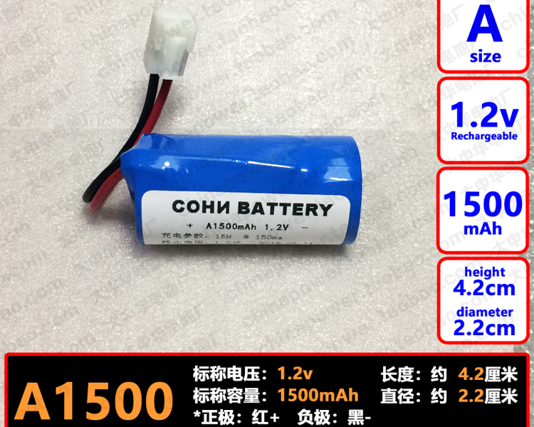 COHN 可充电电池 带插头 A1500mAh 1.2v 应急灯专用电池