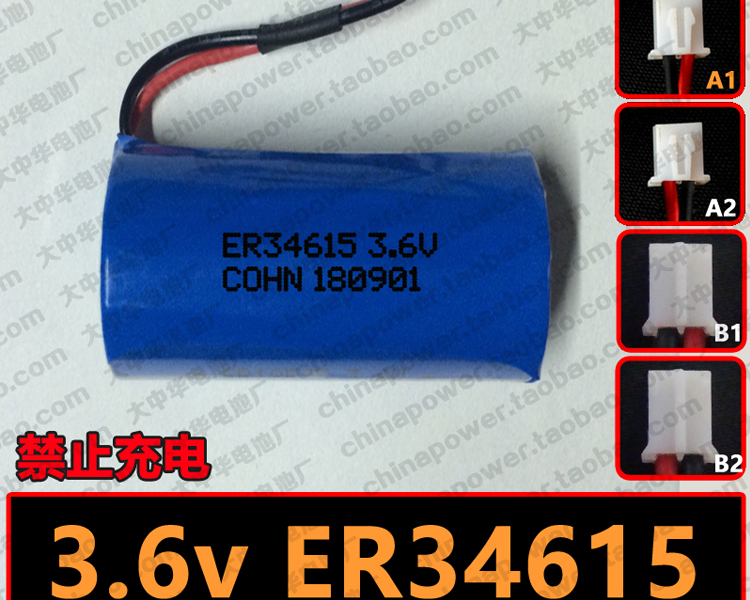 带插头 ER34615 3.6V COHN一次性锂电池 流量计电池