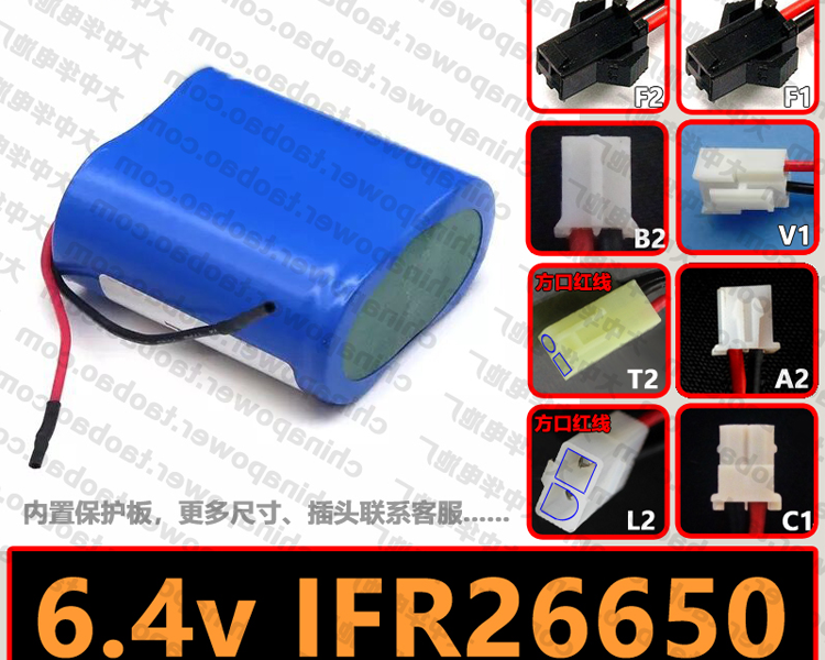 带线 IFR26650 3300mAh 6.4v COHN可充电锂电池